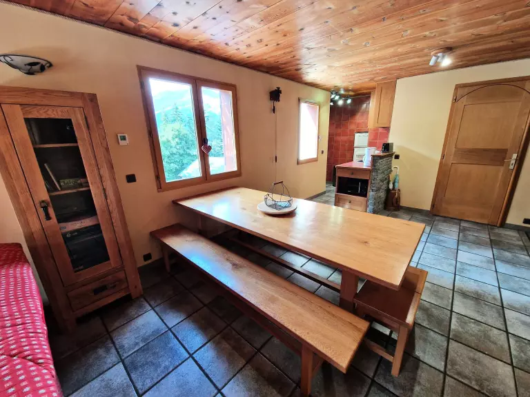 - Grande table de repas avec 2 bancs et 2 tabourets