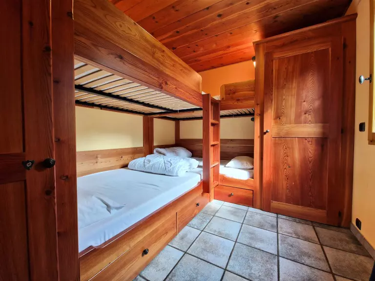 - 1 chambre avec 2 lits doubles superposés + 2 lits simples superposés, soit 6 couchages + placard