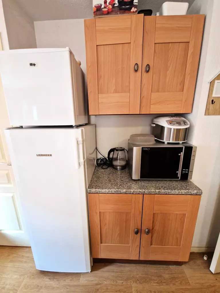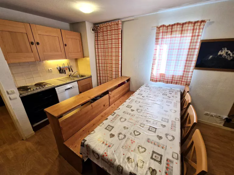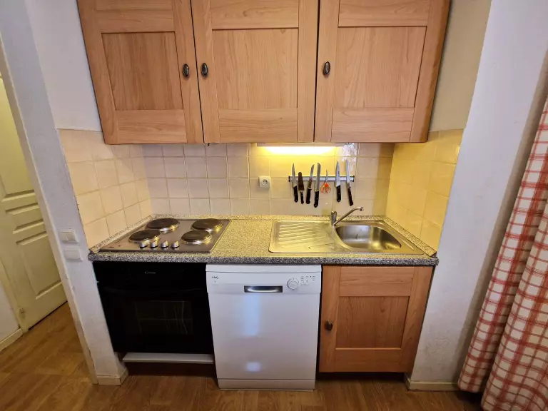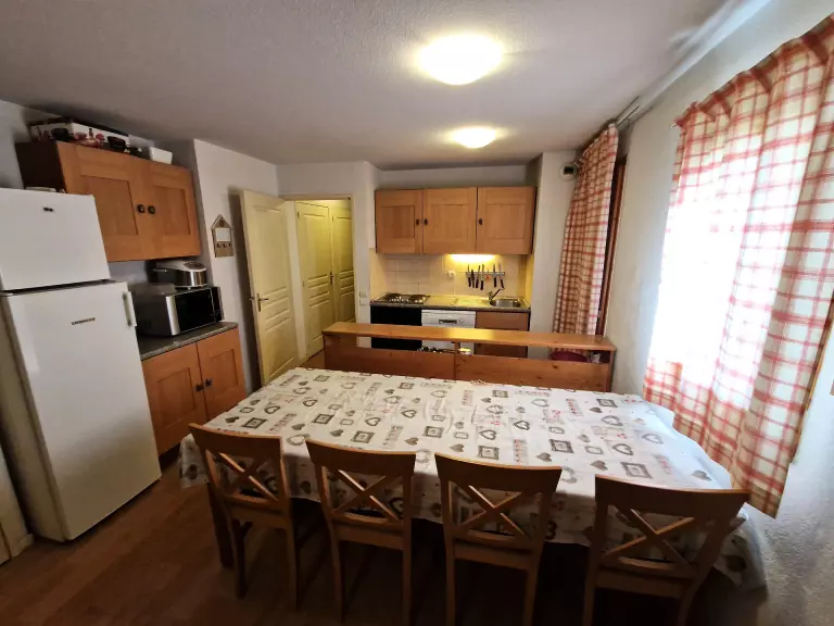 - Cuisine ouverte sur le séjour avec four, 4 plaques, grand frigo, lave-vaisselle.