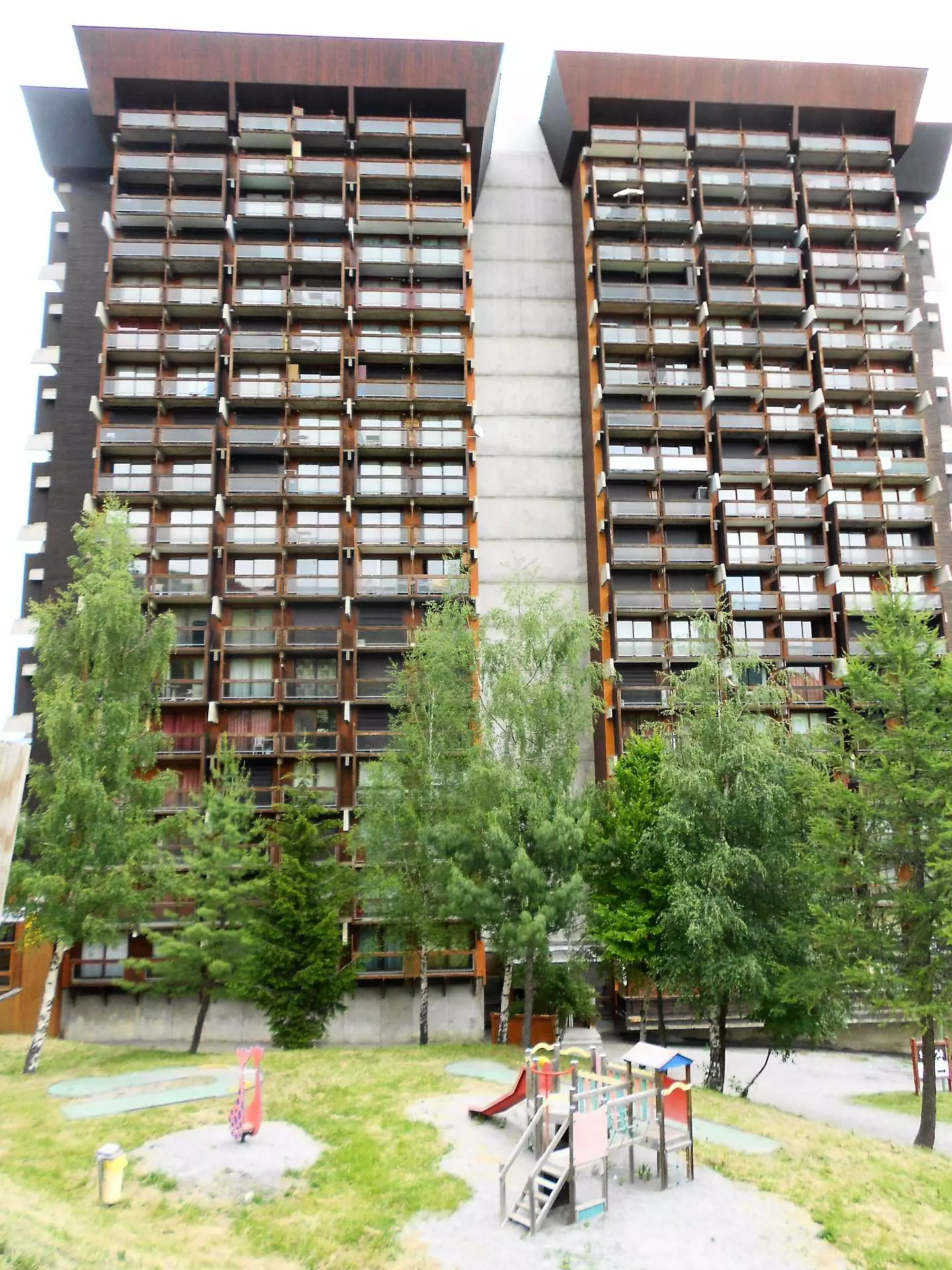 Gardien, 4 ascenseurs, rampe d'accès handicapé sur le côté de l'immeuble, casier à skis, parking extérieur