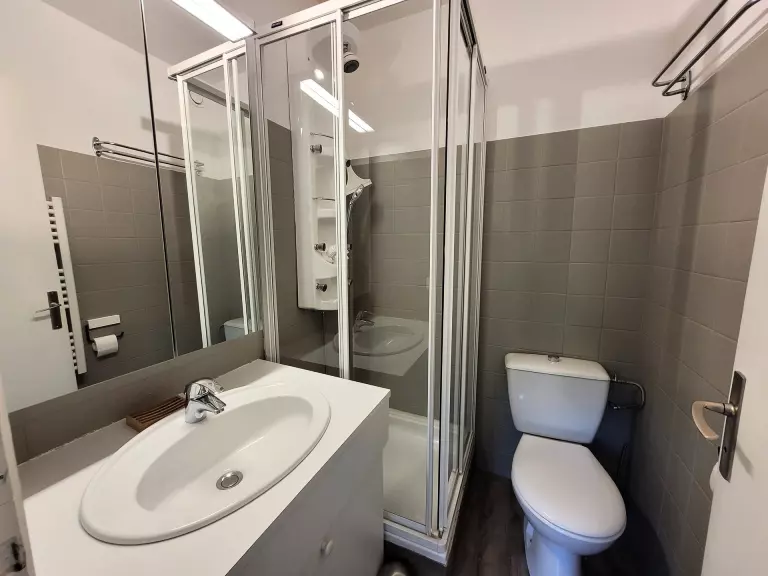 - 1 salle de douche avec WC, cabine de douche à jets, et seche serviette electrique.