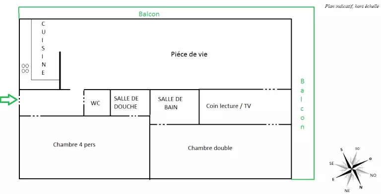 - 1 coin lecture /TV, ouvrant sur balcon exposé Sud