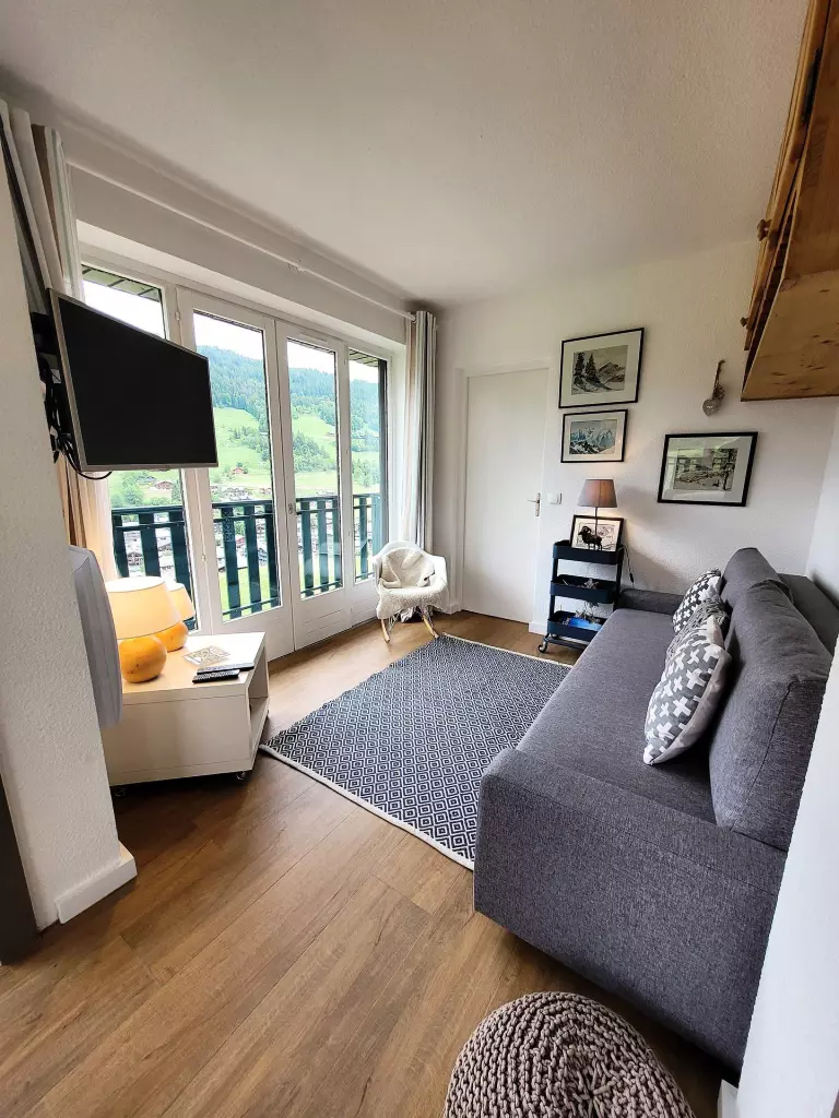 - 1 salon sejour avec acces balcon exposé sud et Ouest, vue sur village et pistes.