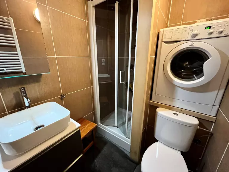 - 1 salle de douche avec lavabo, WC, et lave-linge