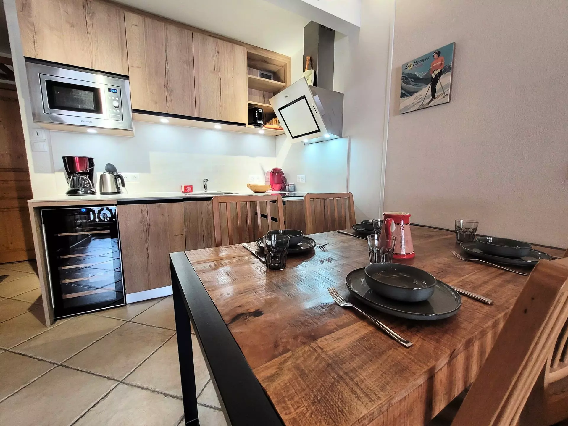 Chauffage individuel électrique, télévision, lave vaisselle, lave-linge, grille-pain, bouilloire, cafetière filtre et Tassimo, plaques vitrocéramiques, réfrigérateur, cave à vin, four, appareil à raclette et fondue, aspirateur, sèche-cheveux. Absence de Wifi (possibilité de louer une Wifi de poche)