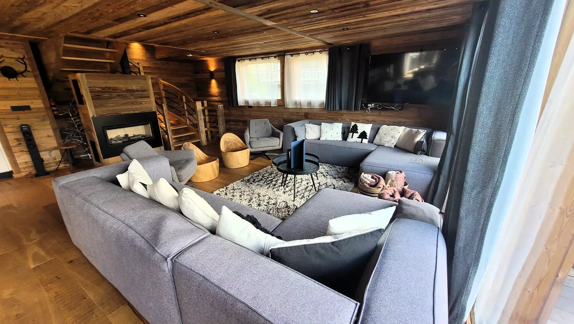 EQUIPEMENTS : Jacuzzi et sauna. Lave-vaisselle, four et four micro-ondes, machine à café Nespresso et filtre, grand réfrigérateur, congélateur, cave à vin, appareil à raclette et fondue, grille-pain, bouilloire. Lave-linge, sèche-linge, sèche-cheveux, table et fer à repasser. Cheminée au gaz. Chauffage individuel au sol, télévisions connectées, WIFI. Lit bébé (draps en suppléments) et chaise haute. Sur demande uniquement. Barbecue interdit.
