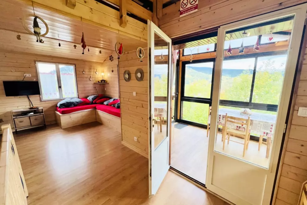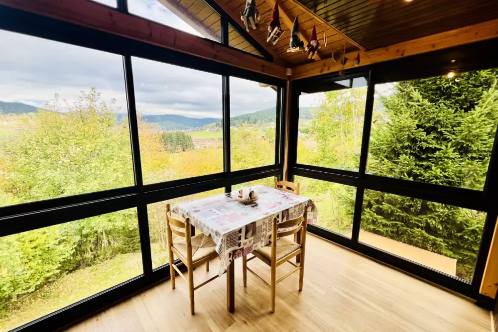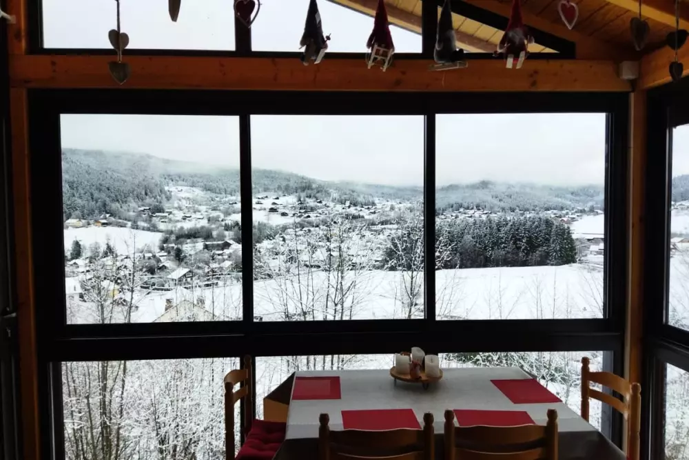 Dès votre arrivée, vous serez charmé par sa véranda avec une vue imprenable sur la vallée. Ce lieu de détente est idéal pour profiter des paysages et admirer la nature environnante. À l’extérieur, une grande terrasse, un jardin avec balançoire et un filet de badminton sont à votre disposition pour des moments de partage en plein air. En hiver, vous pourrez même vous amuser avec la luge en bois disponible sur place. Le barbecue promet de belles soirées conviviales autour de délicieux repas.