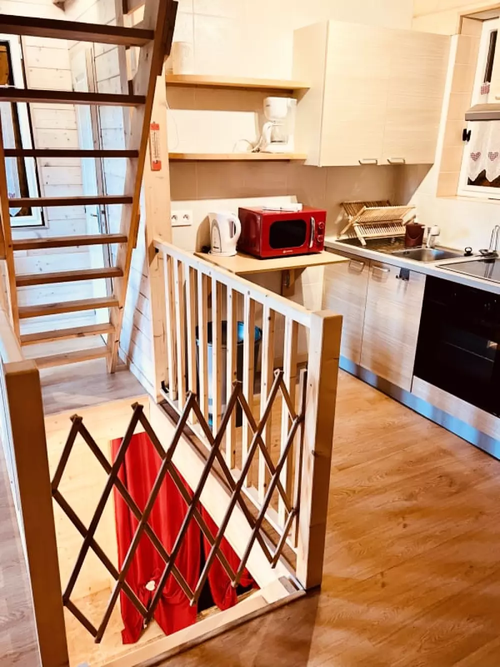 L’intérieur du chalet est entièrement équipé pour rendre votre séjour agréable. La cuisine comprend un four, un micro-onde, un autocuiseur électrique, un grille-pain et un mixeur, parfaits pour préparer vos repas comme à la maison. Pour les soirées en famille, un appareil à raclette est à disposition, idéal pour déguster des plats savoyards en toute simplicité. Vous trouverez également une machine à café pour vos moments de détente. Le salon est équipé d'une télévision pour vos soirées cocooning. Des jeux de société, un jeu de fléchettes et un babyfoot sont également disponibles pour divertir petits et grands.