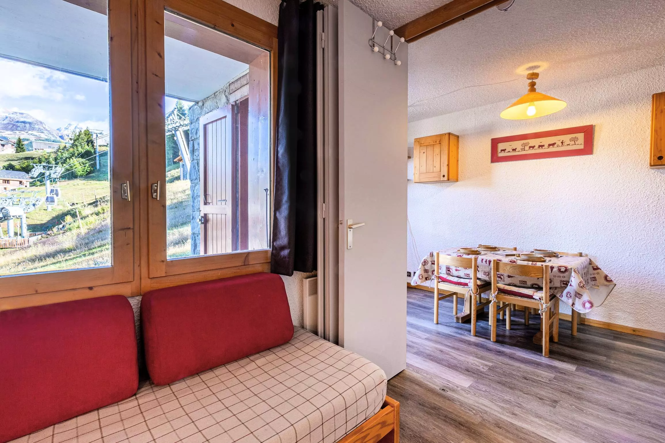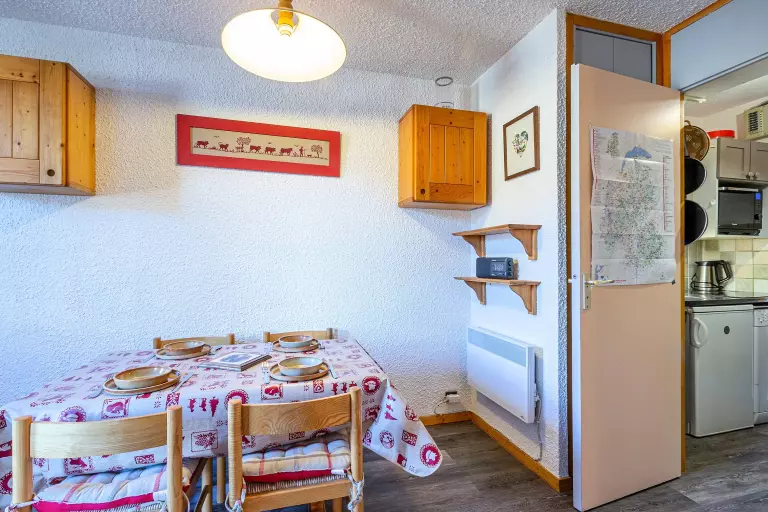 Ce studio divisible par cloison mobile de 24 m², classé 1 étoile, est situé au 2ème étage (sans ascenseur) et est équipé pour 4 personnes. Il comprend :