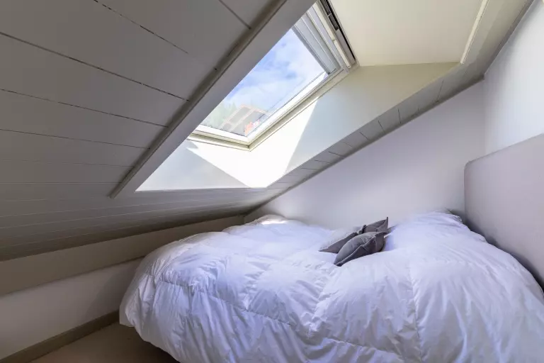 2 chambres avec 1 lit double chacune (140cm). Les chambres sont très mansardées <1.80m