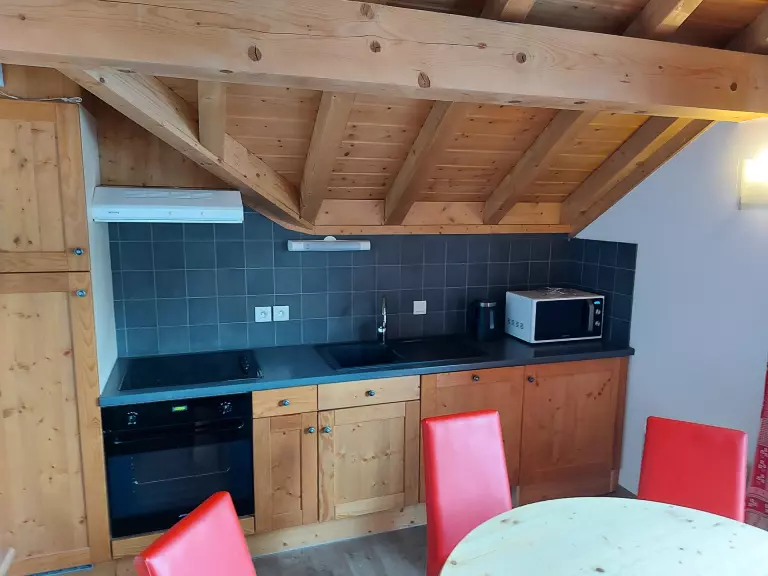 - Coin cuisine : lave-vaisselle, four, micro-ondes, réfrigérateur/congélateur et plaque induction.