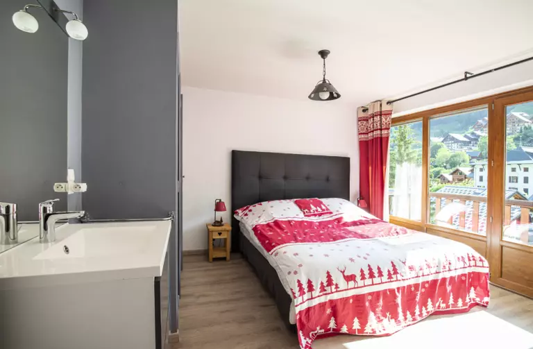 Chambre 1 (13,5m²/ Est) : 2 lits simples (2x 90x190cm/ peuvent être accolés) + télévision + lavabo