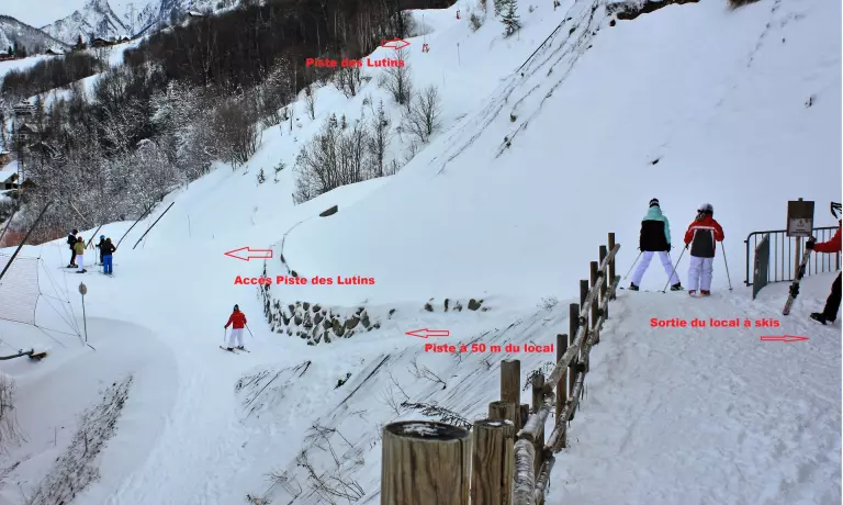 Possibilité de départ de la résidence "skis aux pieds" pour rejoindre la piste des Lutins à 50m (DECONSEILLE aux débutants).