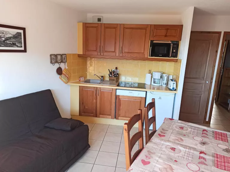 Équipements : Lave vaisselle, réfrigérateur, micro-ondes, plaques vitrocéramiques, Télévision. Loué avec un casier à ski. WIFI payant disponible à l'agence sur réservation.