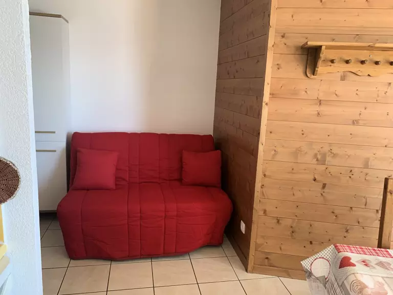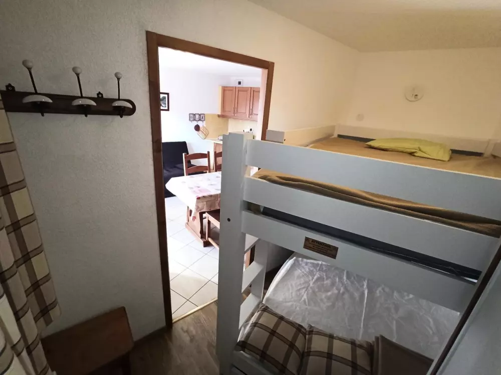 Ce bien est composé d'une entrée, une salle de bain avec baignoire et WC séparés, un séjour avec cuisine américaine, une chambre comprenant un lit double et un lit simple en hauteur ainsi qu'un canapé convertible dans le séjour.
