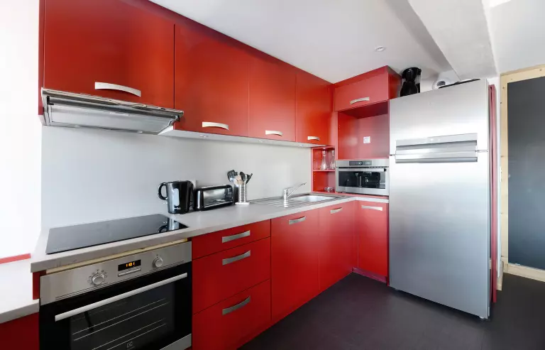 Cuisine: ouverte avec 4 plaques électriques, grille pain, bouilloire électrique, four, réfrigérateur, lave vaisselle et four