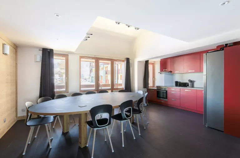Elle est composée de 6 étages avec deux ascenseurs et un accès facile sur les pistes