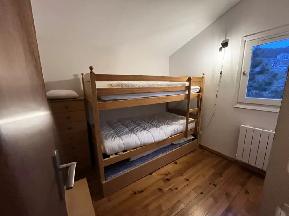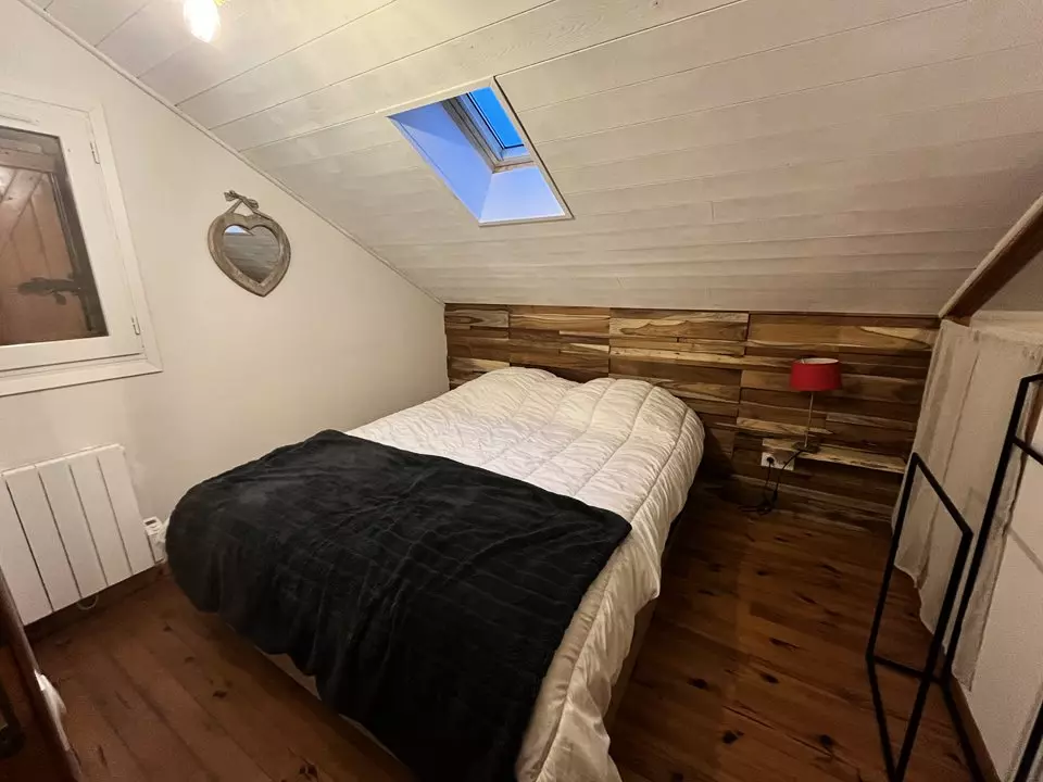 A l'étage deux chambres, l'une avec lit en 160 cm et l'autre trois lit en 90 cm.