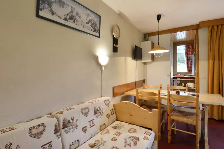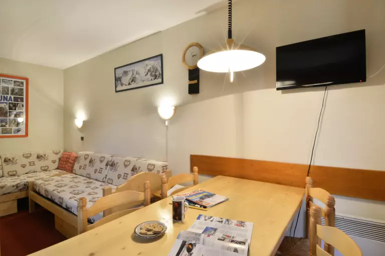 Il est situé au sud est et au 7ème étage avec un balcon (vue pistes).