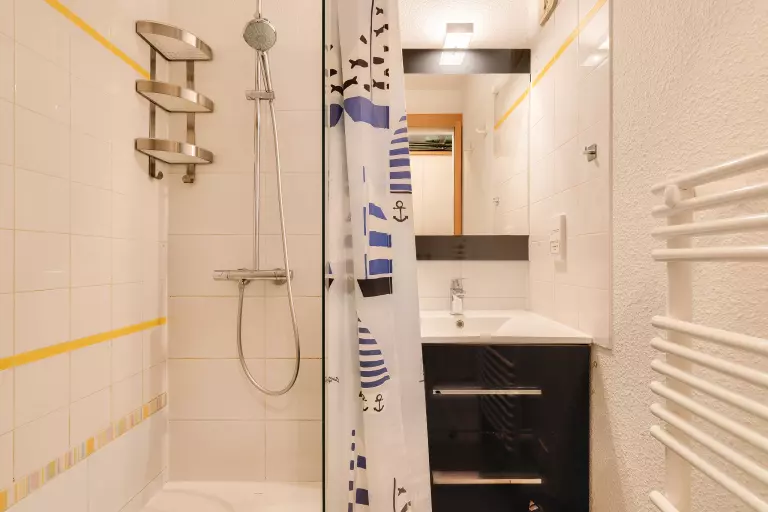 Cet appartement ne dispose pas d'une machine à laver, mais une laverie automatique se trouve à 150 m de la résidence. Le stationnement est public et gratuit et vous disposez d'une borne de recharge pour véhicule électrique au pied de la résidence. Afin de profiter des installations de la résidence, vous trouverez des boules de pétanque et un set de 7 clubs de golf. La résidence dispose d'un espace piscine communautaire, avec quatre bassins dont une pataugeoire pour les plus petits. Elle est accessible grâce aux quatre bracelets que vous trouverez dans le logement. Enfin, vous trouverez dans la salle de bain un sèche-cheveux et une brosse lissante.