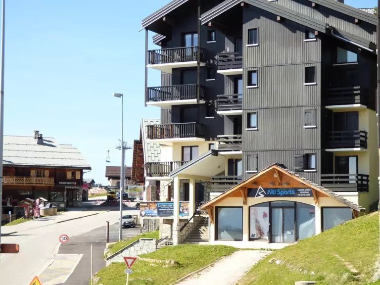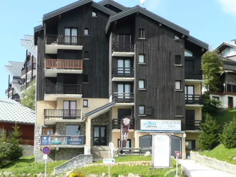 Appartement studio cabine situé au 1er étage de la résidence sans ascenseur (un demi étage à monter + environ 10 marches à l'extérieur pour accéder à la résidence), orienté est avec balcon.