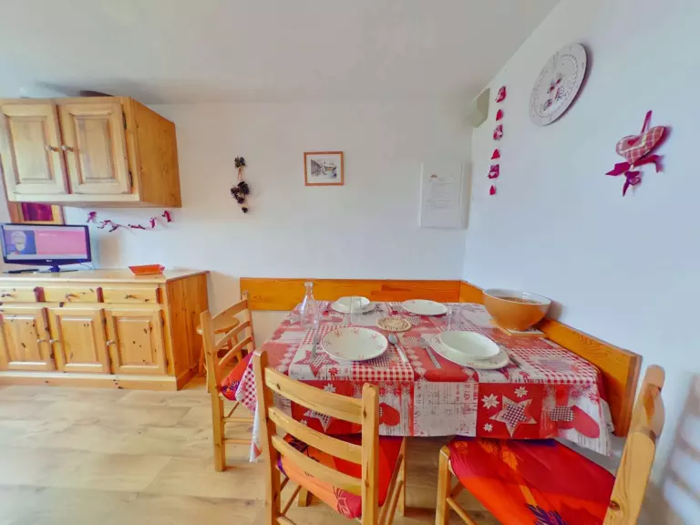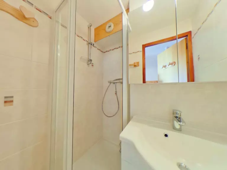 L'appartement se compose d'une kitchenette équipée, d'un séjour avec canapé, d'une alcôve avec 2 lits superposés (2x80), d'une cabine avec un lit placard de 140, d'une salle d'eau et d'un WC séparé. (NB: le lit supérieur d'un lit superposé est interdit aux - de 6 ans)