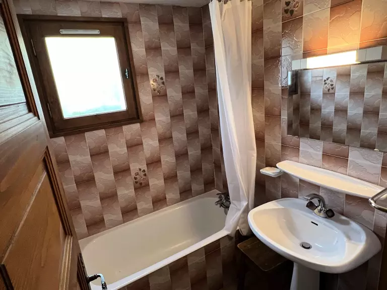 Salle de bain : baignoire, lavabo.