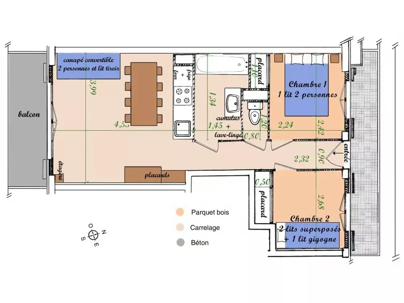 Chambre 2 : 1 lits superposés + 1 gigogne.