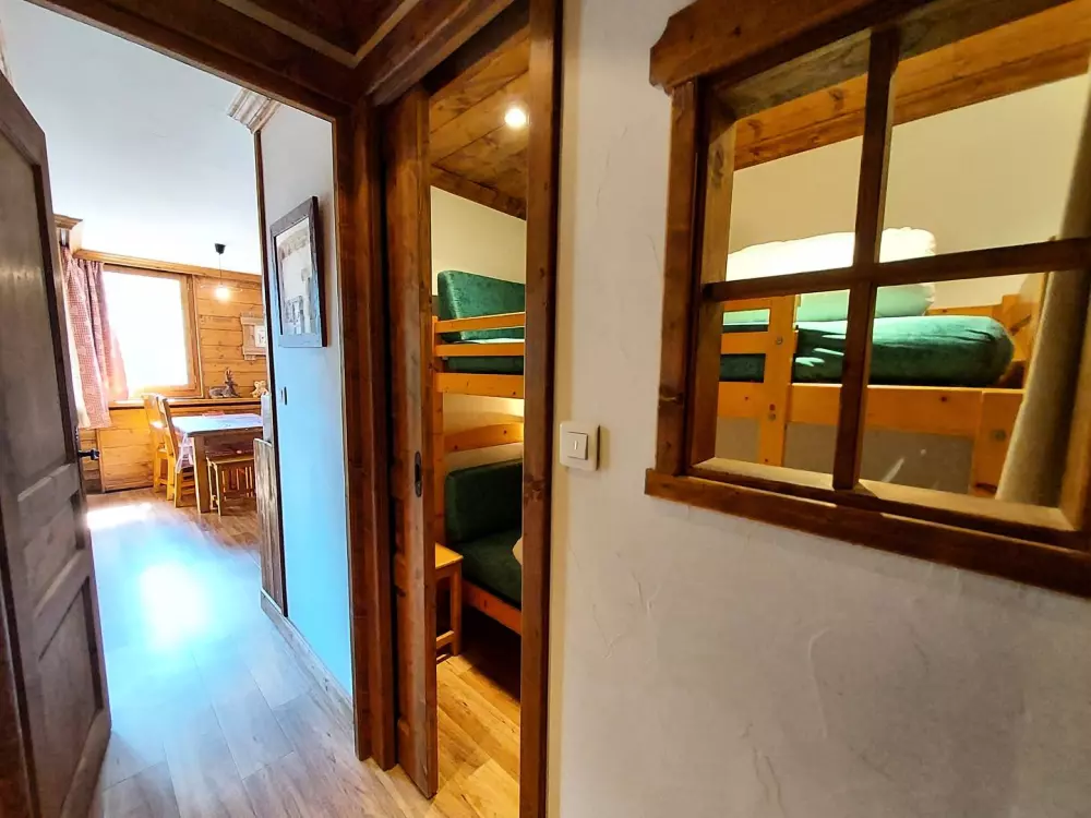 Coin nuit cabine dans l'entrée : lit superposé (2 couchages 80x190 cm).
