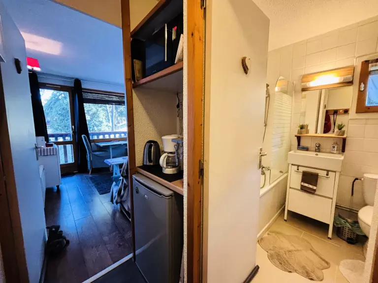 Ce studio de 17 m² est situé au 1er étage (sans ascenseur) et est équipé pour 2 personnes. Il comprend :