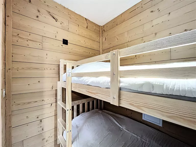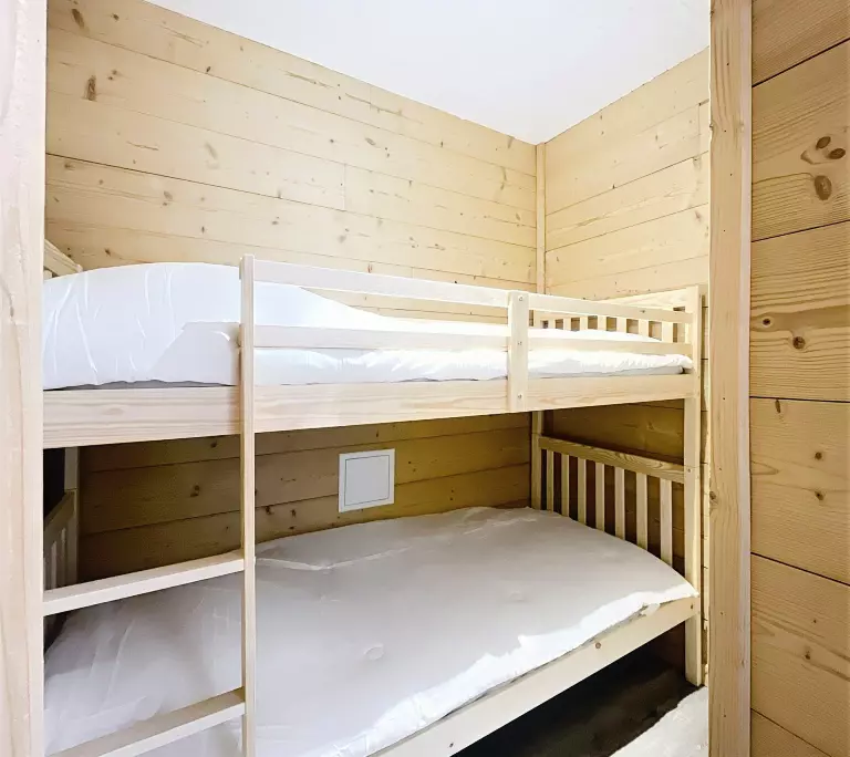 • D'une alcôve avec 2 lits superposés, séparée du séjour par un rideau.