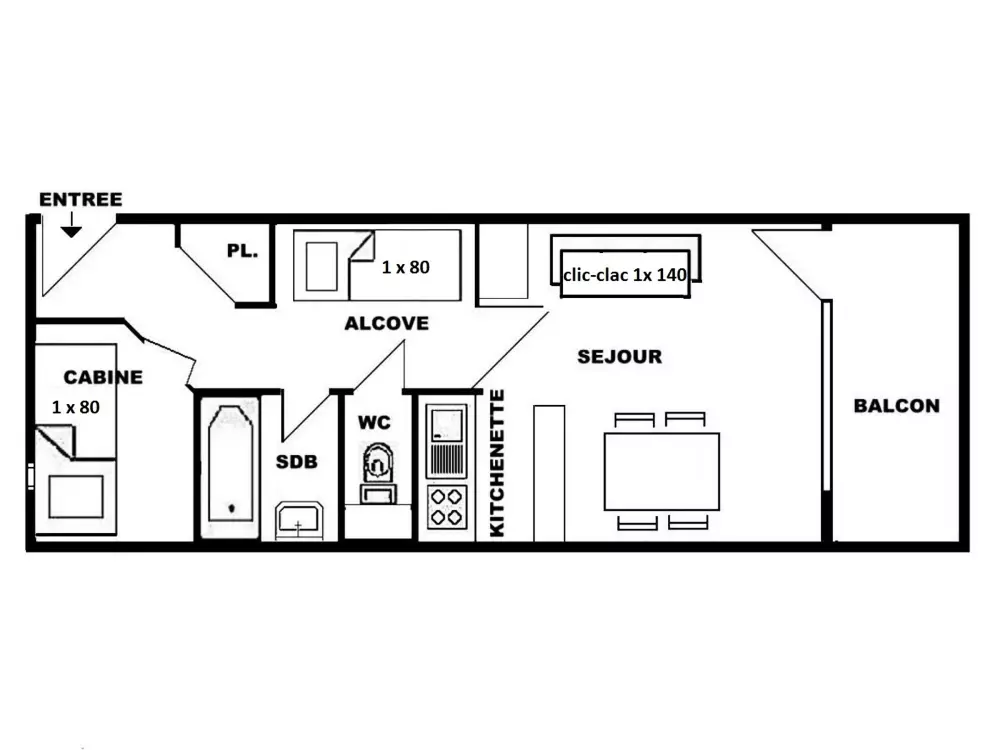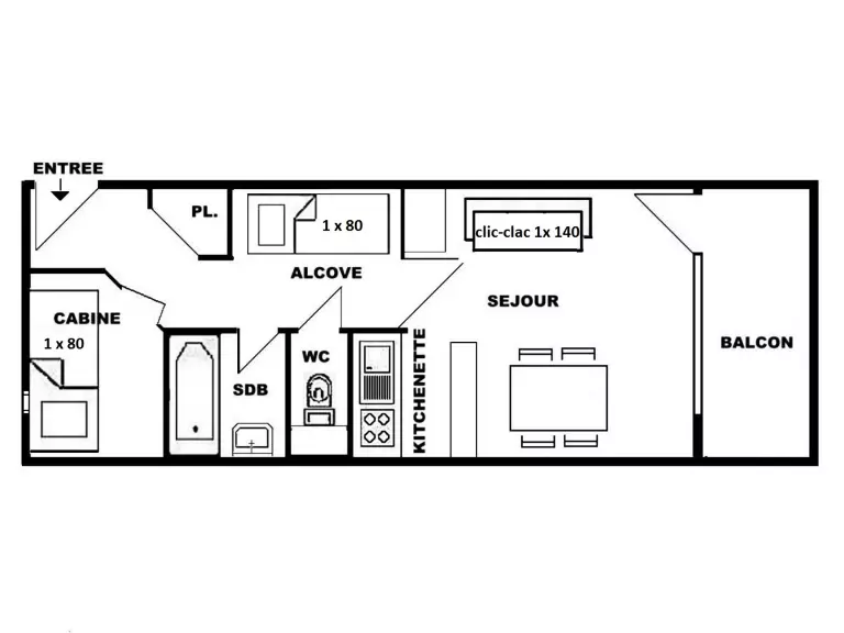 1 Pièce 4 Personnes