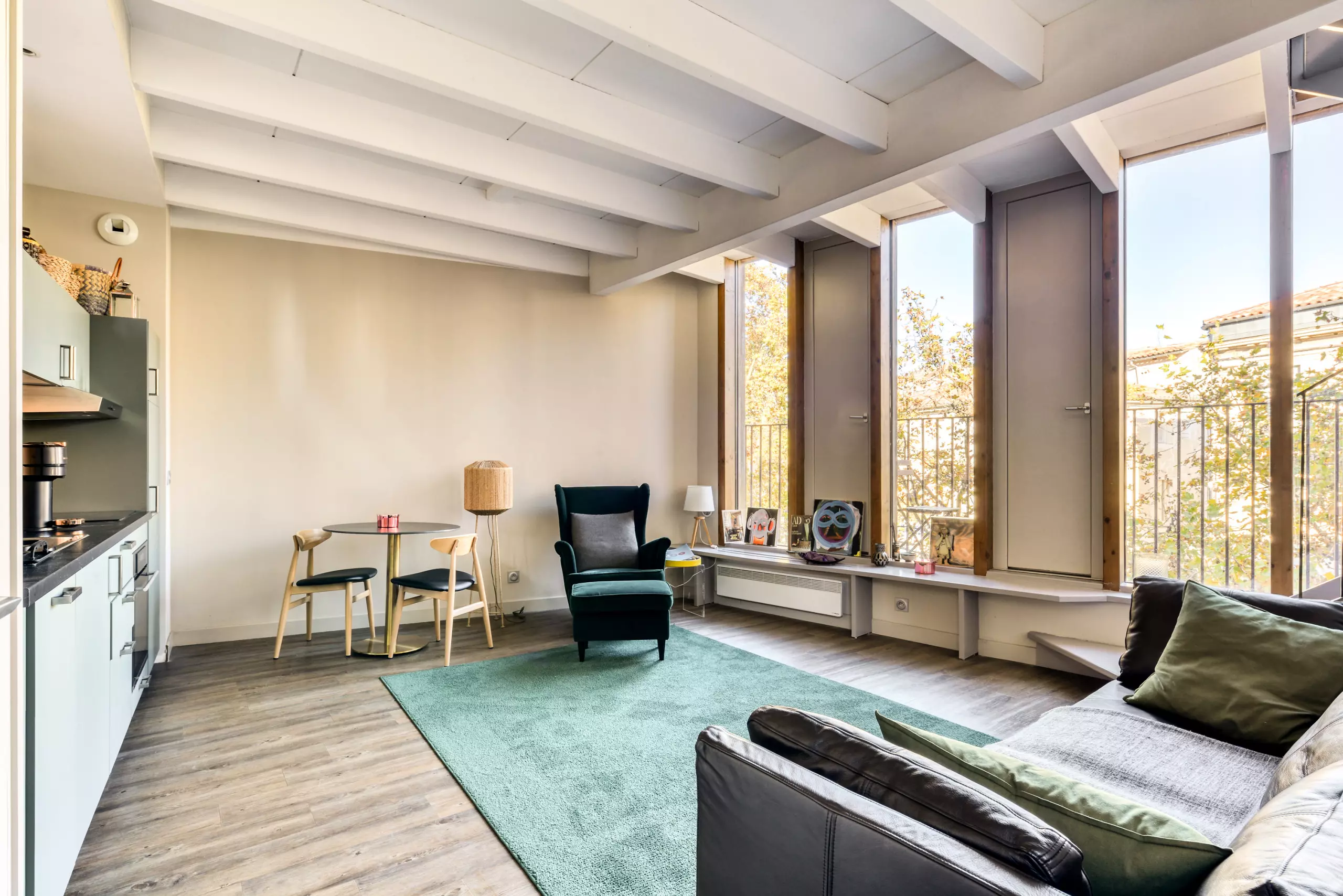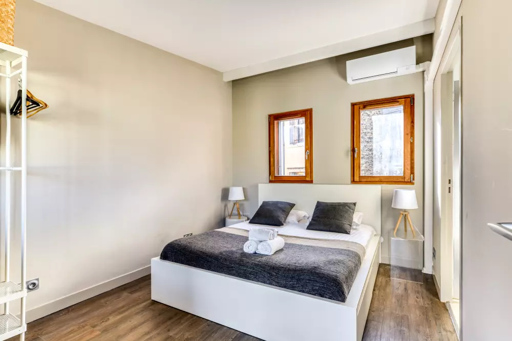 Vous tomberez sous le charme de ce duplex moderne et élégant, au 2° étage sans ascenseur d'un bel immeuble restauré. Un espace spacieux et très lumineux pour la pièce à vivre, avec une cuisine américaine entièrement équipée qui saura ravir les gastronomes ! Une pièce complétée par un charmant balcon et une petite table idéale pour une petite pause suspendue. L'escalier offre une magnifique vue surplombant le quartier en vous amenant à l'étage où vous attendent deux chambres doubles (une avec lit double et une avec canapé-lit) et une salle de bain dotée d'une douche à l'italienne et d'une machine à laver.