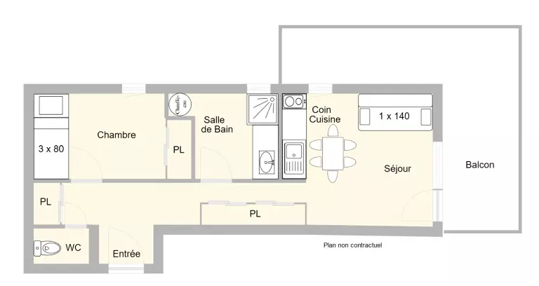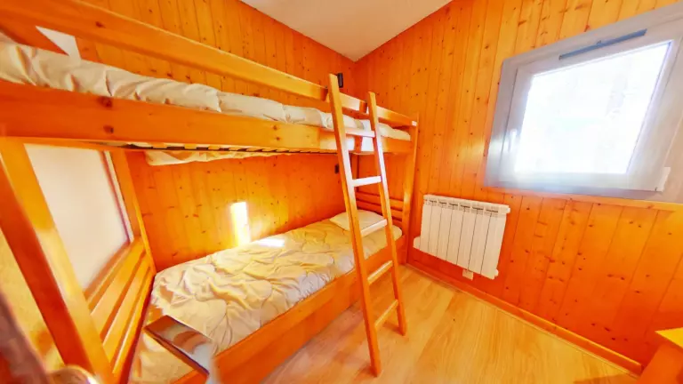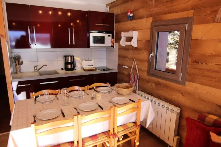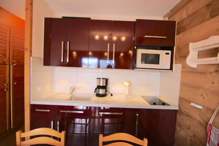 L'appartement se compose d'un séjour avec une canapé rapido en 140, d'une kitchenette équipée ouverte, d'une chambre avec des lits superposés 2x90 (NB : le lit supérieur d'un lit superposé est interdit aux - de 6 ans) et un lit 90 tiroir, d'une salle d'eau et un WC séparé.