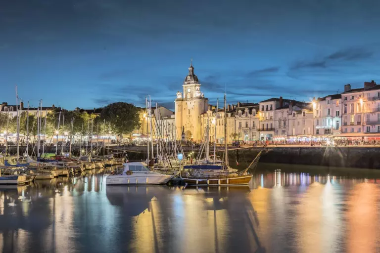 Destination incontournable, La Rochelle ne manque pas d'atouts pour charmer ses visiteurs. Ville portuaire par excellence avec ses quatre ports, la Cité Blanche envoûte tous ceux qui posent le regard sur la pierre blanche baignée de soleil dans laquelle les bâtisses sont construites. L'océan, omniprésent, s'impose comme le symbole de la ville, balayant les narines des visiteurs de ses embruns. Les vieilles pierres ont, elles aussi, leur mot à dire dans ce paysage bordé par l'océan Atlantique où s'alternent côtes basses, falaises à pic et côtes sablonneuses. Les échanges internationaux ont favorisé un mélange architectural unique, soumis à diverses influences venues de par-delà les mers. Non loin du rivage, les îles de Ré, d'Oléron et d'Aix forment une barrière naturelle empêchant la houle de l'océan de venir perturber le calme de la Cité millénaire. Initialement village de pêcheurs fondé au Xᵉ siècle, il ne lui faudra que deux millénaires pour devenir un port d'importance. Sa domination dans les échanges maritimes perdurera jusqu'au XVe siècle. Mais son esprit rebelle n'est pas du goût du Roi et elle pliera sous le siège de Richelieu au XVIe siècle. Malgré son indépendance perdue, La Rochelle poursuit son essor économique grâce aux siècles jusqu'à nos jours grâce à la proximité de l'océan, toujours au centre des échanges maritimes.