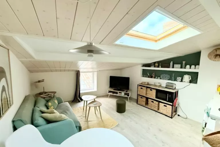 Situé au 3ème étage sans ascenseur, ce petit appartement mansardé sous les toits, lumineux et plein de charme vous accueille pour un séjour agréable.