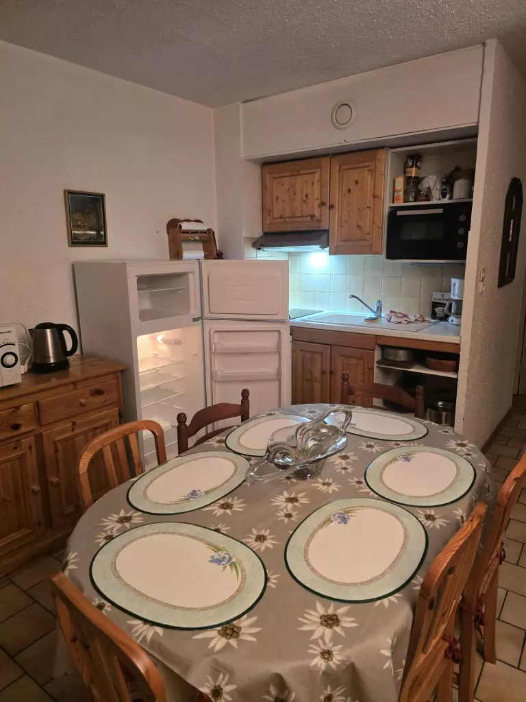 - Coin cuisine : plaques électriques, mini-four, micro-ondes, réfrigérateur avec compartiment congélateur