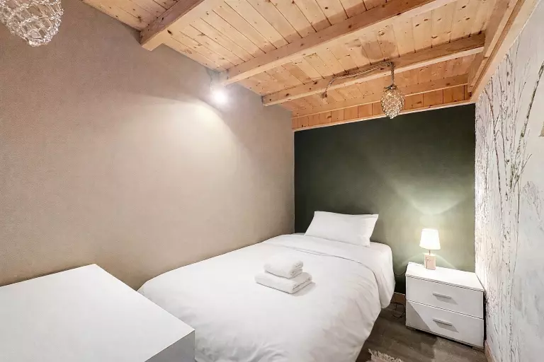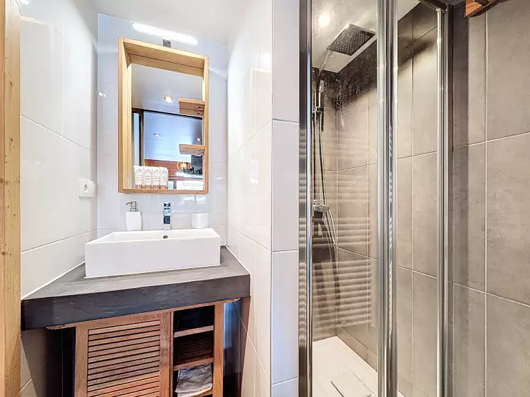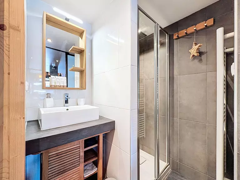 L'appartement dispose de deux chambres et une chambre cabine : deux chambres avec des lits doubles et la chambre cabine avec un lit individuel. La salle de bain avec douche répondra à tous vos besoins de confort et de praticité.