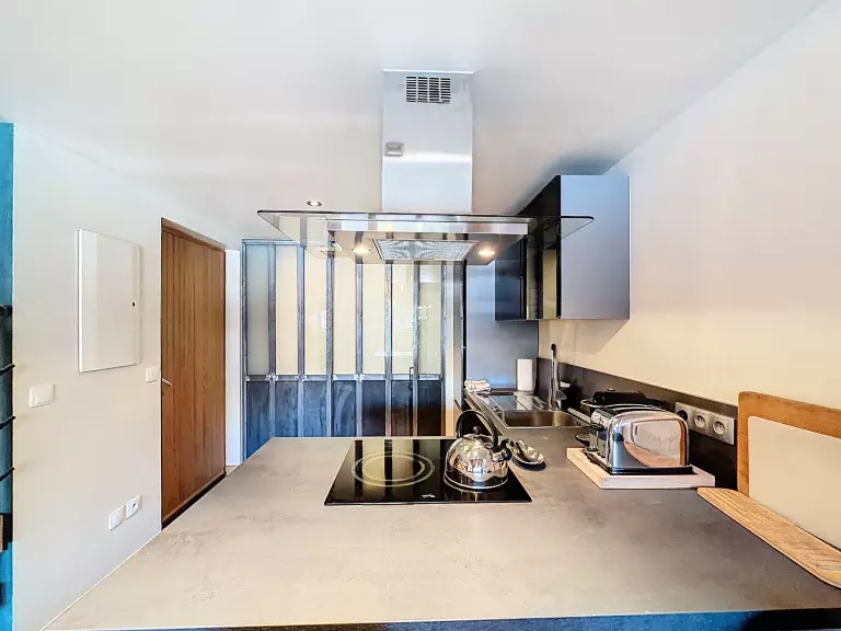 La cuisine ouverte équipée vous permettra de cuisiner de délicieux repas. Elle est pourvue d'un réfrigérateur, d'une machine à café, d'un lave-vaisselle, et d'une bouilloire, d'un grille pain, d'un four facilitant la préparation de vos repas.