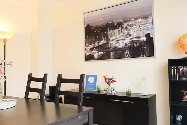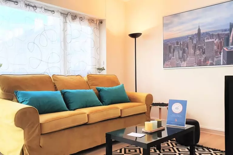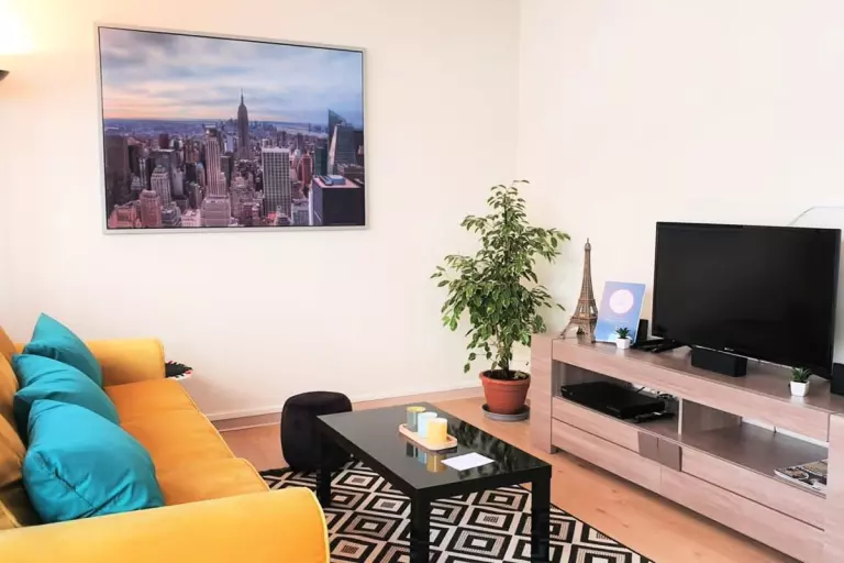 - Un beau salon/salle à manger avec balcon (idéal pour les petits déjeuners au soleil) avec canapé convertible ;