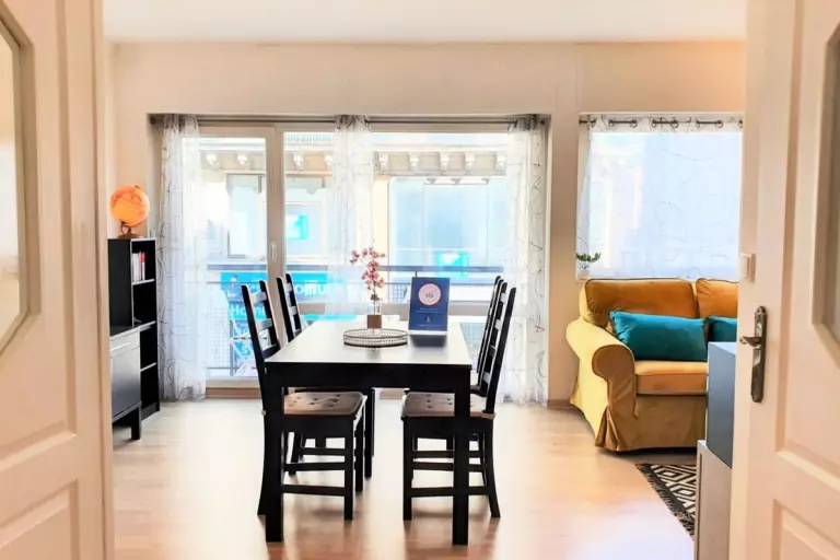 Situé au premier étage d'une copropriété sécurisée, notre appartement est un grand F2 pouvant recevoir 3 personnes. Composé d'une chambre avec dressing et d'un salon lumineux avec balcon, il est idéal pour un séjour en famille, professionnel ou entre amis.