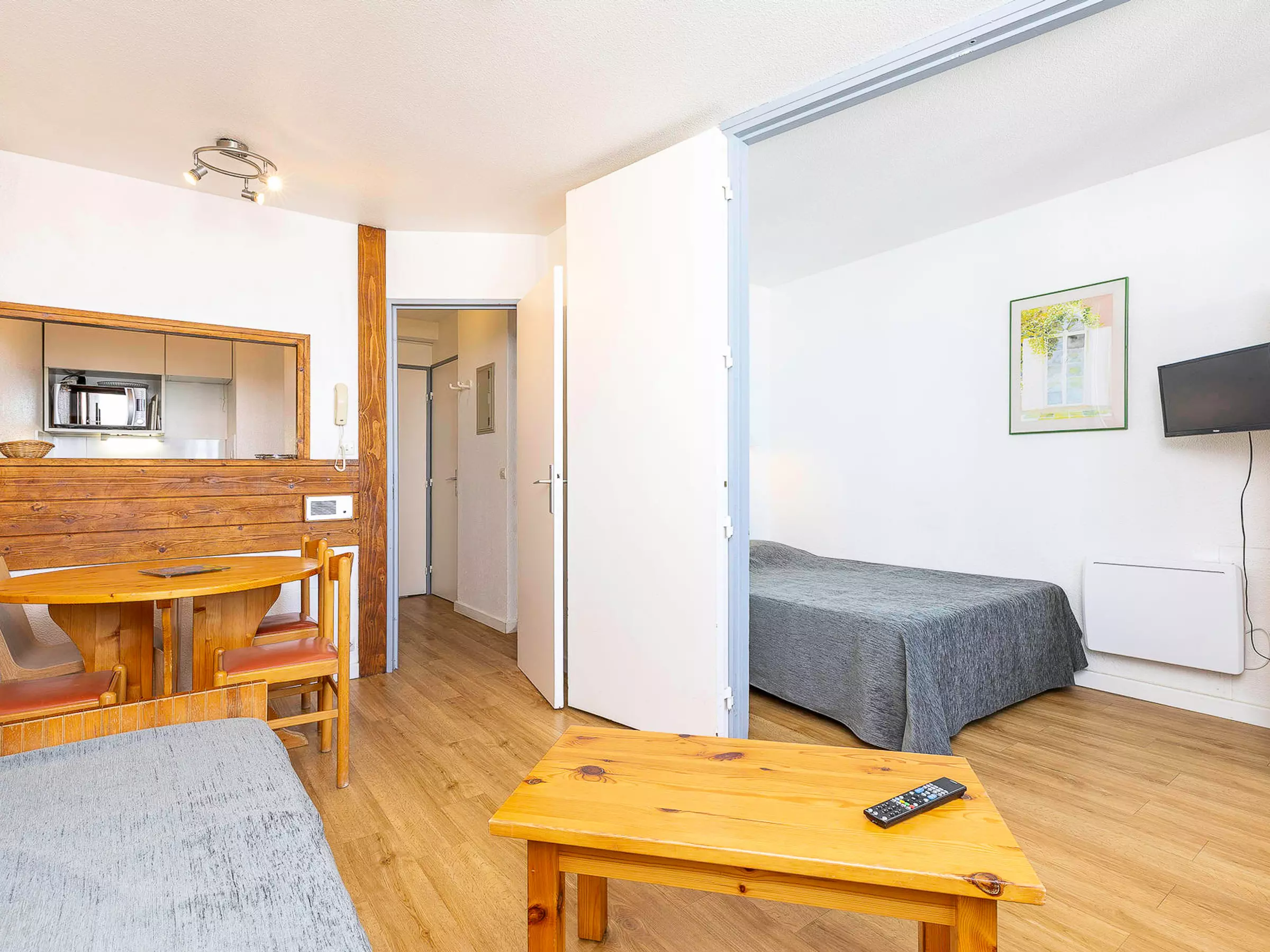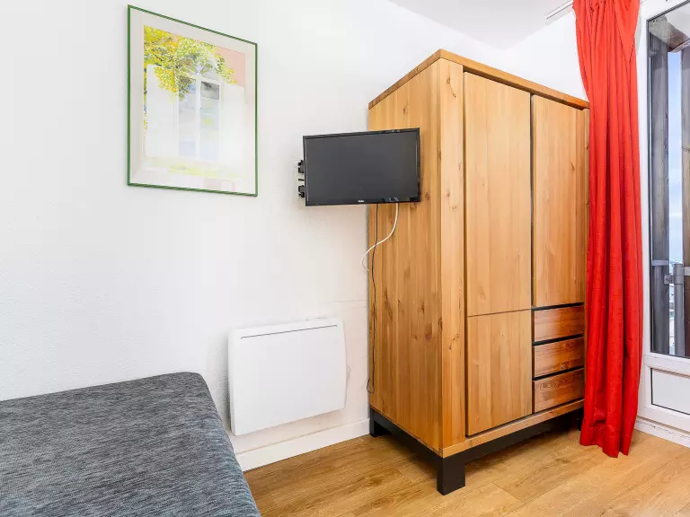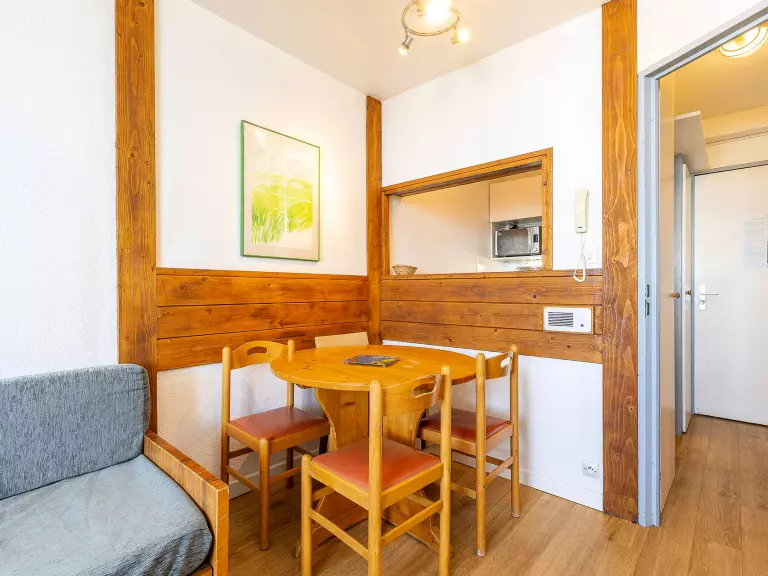 Perché au 11ème étage de la résidence Alpages 1, cet appartement d'environ 26m² offre une belle luminosité et une vue dégagée sur la station. Espace de vie : Le séjour dispose d'une cuisine équipée (Réfrigérateur, plaques électriques, lave-vaiseelle et cafetière à filtre etc). Mais également d'un coin repas pour 5 personnes ainsi qu'un salon avec deux banquettes lits simples (80x190cm) et d'un lit gigogne (80x190cm). Un balcon exposé ouest prolonge l'espace. Le coin nuit : - Chambre avec lit double (140x190cm) avec accès direct au balcon - Une salle de bains - WC indépendants Atouts & Détails : - Balcon exposé ouest - Etage élevé et vue dégagée - Casier à ski Avantage Standard : Draps de lits inclus Ce logement est diffusé par un professionnel. Sauf mention contraire, les prestations, telles que ménage, draps, serviettes etc.. ne sont pas incluses dans le prix de cette location. Si animaux de compagnie admis (indiqué dans annonce), un supplément peut s'appliquer. Seuls les équipements mentionnés spécifiquement dans cette annonce sont présents. Un équipement non indiqué n'est pas considéré comme présent. Sauf indication de borne de charge électrique présente dans le logement, la recharge des véhicules électriques est interdite.