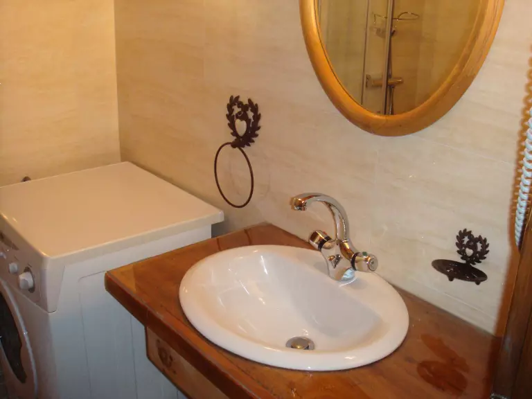 Salle d'eau : lavabo, douche, sèche-cheveux et lave-linge. WC indépendant.