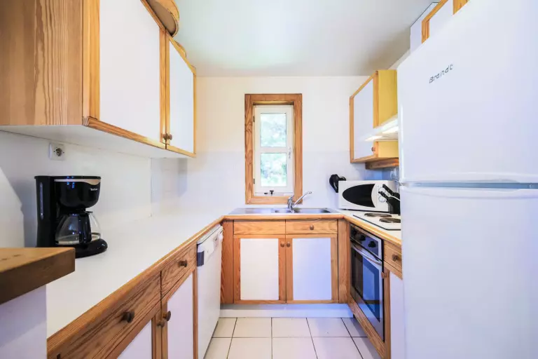 Cuisine : Coin cuisine équipée ouvert sur le séjour.