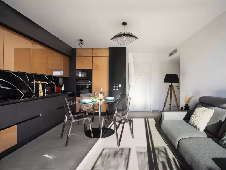 Aménagement intérieur de haut standing. Mobilier assorti et confortable. Pour les clients qui souhaitent un intérieur de grande qualité.