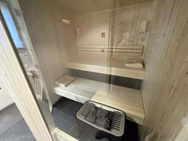 Coin détente (Niv 0) : Sauna 5/6 places + douche.