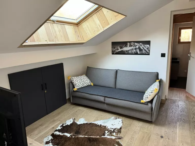 Palier (Niv+1/Ouest) : petit salon avec canapé convertible (160x200cm) + télévision