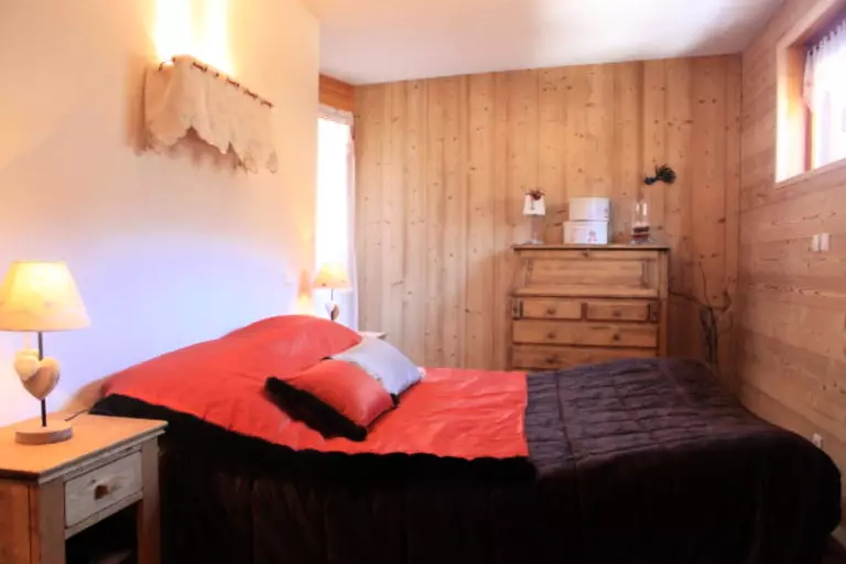 - une chambre avec un lit double, salle de douche et wc