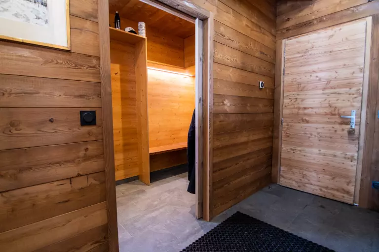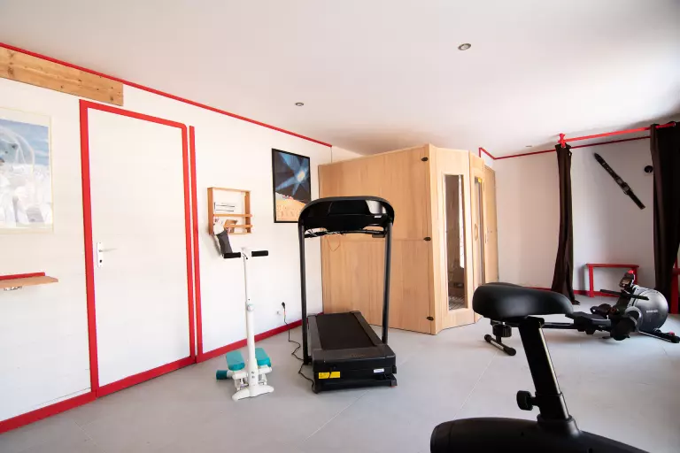 Espace détente (Niv -1/ 43m²/ accès par l'extérieur du chalet) : sauna, équipement sport, jeu de fléchettes, babyfoot avec monnayeur.