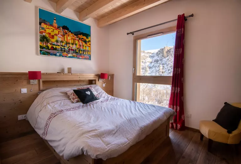 Chambre 4 (Niv +1/ 14m²/ Sud) : 1 lit double (160x200cm) + 1 lit simple (90x190cm)